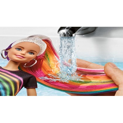 ¡La muñeca articulada Barbie Mechas Arcoíris iluminará la imaginación de los niños para diseñar peinados únicos con gel con purpurina, accesorios para el pelo y funciones impresionantes!