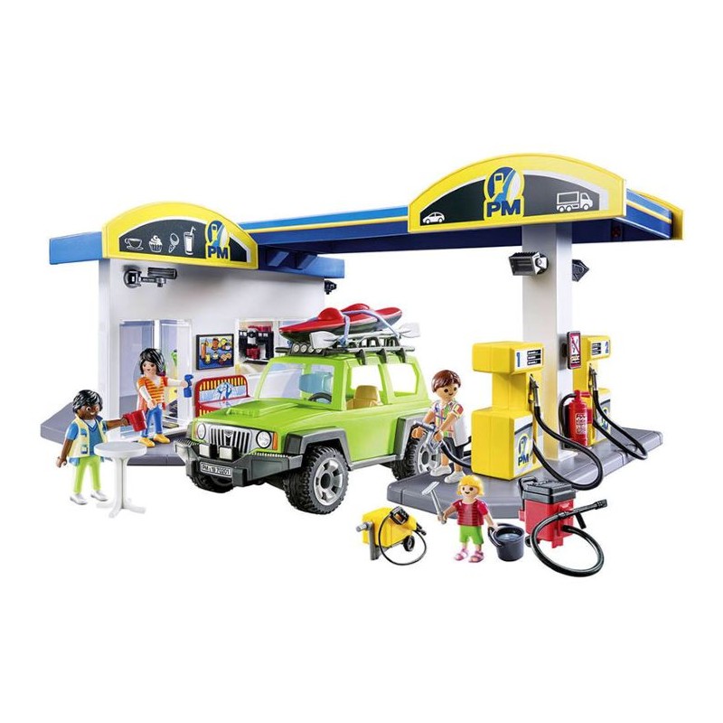 Diversión para los pequeños héroes: PLAYMOBIL Gasolinera, Set de juego con figuras y muchos accesorios para jugar 4 figuras, Gasolinera con tienda, coche todoterreno con techo desmontable, etc., Combinable con el Taller de Coches (70202) Juego de figuras para niños a partir de 4 años: Ideal para el tamaño de sus manos y bordes redondeados agradables al tacto Para jugar a diario: Incluye instrucciones para montarlo con ayuda de los padres, Alta calidad y diseño robusto, Limpieza de las piezas (sin pegatinas) con agua corriente y sin químicos Contenido: 1 PLAYMOBIL City Life Gasolinera, Juego de 168 piezas con instrucciones: 1 coche, 4 figuras, 163 accesorios, Material: plástico, LxPxA: 36x52x21 cm, 70201