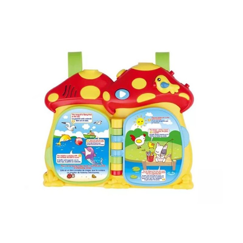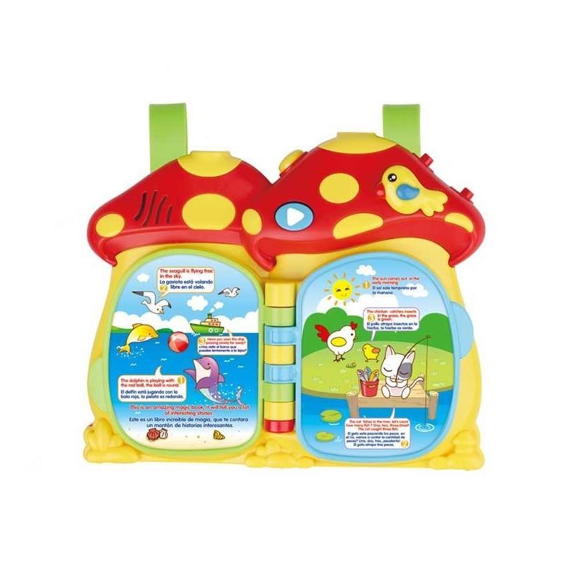 Este libro proyector de cuna 2 en 1 Juguetoon ayudara a tu hijo a conciliar el sueño. Ofrece la posibilidad de colocarlo en la cuna. Incorpora luces, sonidos, aprendizaje de lectura, música y también cuenta historias. Según la historia que elijas, el proyector emitirá la imagen en Full HD. Requiere 4 pilas AA. Edad recomendada: + 12 meses.