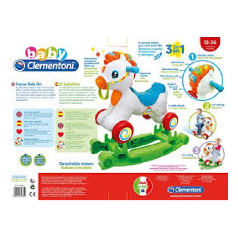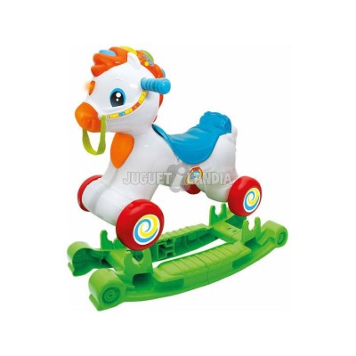 Un caballito balancín, que es también un correpasillos y un centro de actividades interactivo