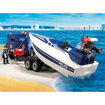 Playmobil Policía - Coche de policía con lancha remolque (5187)