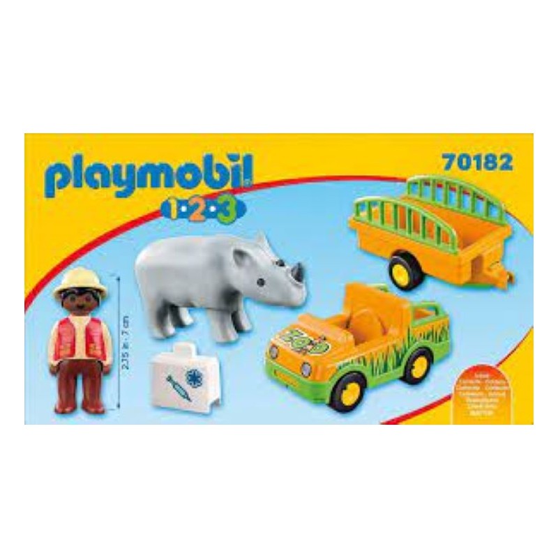 PLAYMOBIL 1.2.3 Vehículo Zoo Rinoceronte, Color Multicolor, Estándar (70182)