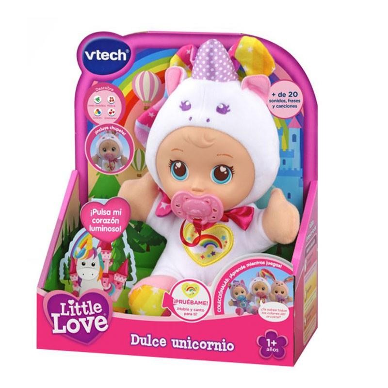 Tiene voz, pulsa el botón luminoso de su barriguita para escuchar qué cuidados necesita y para aprender sobre los unicornios