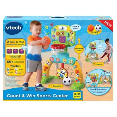 Tres modos de juego: portería de fútbol, canasta de baloncesto y diana para afinar la puntería. Tres botones para descubrir los números, formas y colores durante el juego.Multitud de elementos para manipular y estimular su curiosidad.Tres pelotas con un diseño diferente: fútbol, baloncesto y diana. Tres canciones de temática deportiva y 18 melodías.