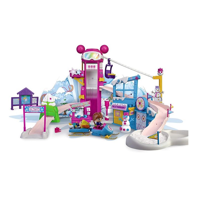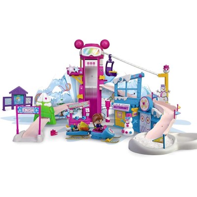 La estación de esquí más completa y divertida de Pinypon tiene dos pistas, una pista de hielo, un ascensor y una telesilla para acceder a las pistas