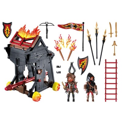 Diversión para niños de gran imaginación: PLAYMOBIL Airete de Fuego de los Bandidos de Burnham con general, espía y geniales accesorios para jugar con todo detalle - Torre móvil con pared que se puede plegar hacia adelante, 2 abrazaderas de pie para fijar las figuras, Ariete que se puede mover hacia adelante con asas para sujetar y mucho más - Juego de figuras para niños entre 4 y 10 años: Idóneo para el tamaño de sus manos y bordes redondeados agradables al tacto - Para jugar a diario: Incluye instrucciones para montarlo con ayuda de los padres, Alta calidad y diseño robusto, Limpieza de las piezas (sin pegatinas) con agua corriente y sin químicos - Contenido: 1 PLAYMOBIL Novelmore Ariete de Fuego de los Bandidos de Burnham, Juego de 53 piezas con instrucciones: 1 torre, 2 figuras, 50 accesorios, Material: Plástico, LxPxA: 22x14,5x23 cm, Peso: 348g,