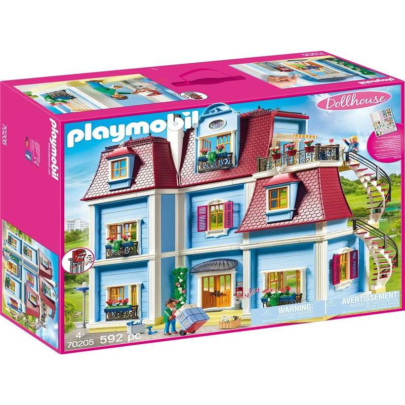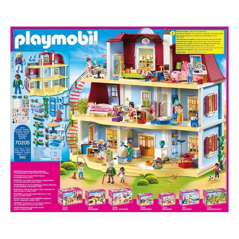 Contenido: 1 PLAYMOBIL Dollhouse Casa de Muñecas, Juego de 592 piezas con instrucciones: 1 Casa, 2 figuras, 589 accesorios (Requiere 2 micro baterías 1,5 V, no incluidas), LxPxA: 68x36x62 cm, 70205