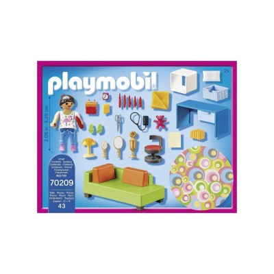 Diversión para niñas y niños: PLAYMOBIL Habitación Adolescente con figura de niña, muebles y numerosos accesorios para jugar - Sofá cama, escritorio y silla, Estantería en forma de cubo con cesta, Mochila escolar para la figura infantil, Combinable: Casa de Muñecas (70205) - Juego de figuras para niños a partir de 4 años: Idóneo para el tamaño de sus manos y bordes redondeados agradables al tacto - Para jugar a diario: Incluye instrucciones para montarlo con ayuda de los padres, Alta calidad y diseño robusto, Limpieza de las piezas (sin pegatinas) con agua corriente y sin químicos - Contenido: 1 PLAYMOBIL Dollhouse Habitación Adolescente, Juego de 43 piezas con instrucciones: 1 sofá, 1 escritorio, 1 figura, 40 accesorios, Material: Plástico, Puede ser montado individualmente, Peso: 98 g, 70209