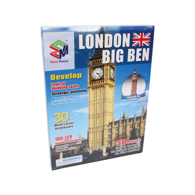 Puzzle para hcer en 3D del Reloj de Londres con 30 piezas.