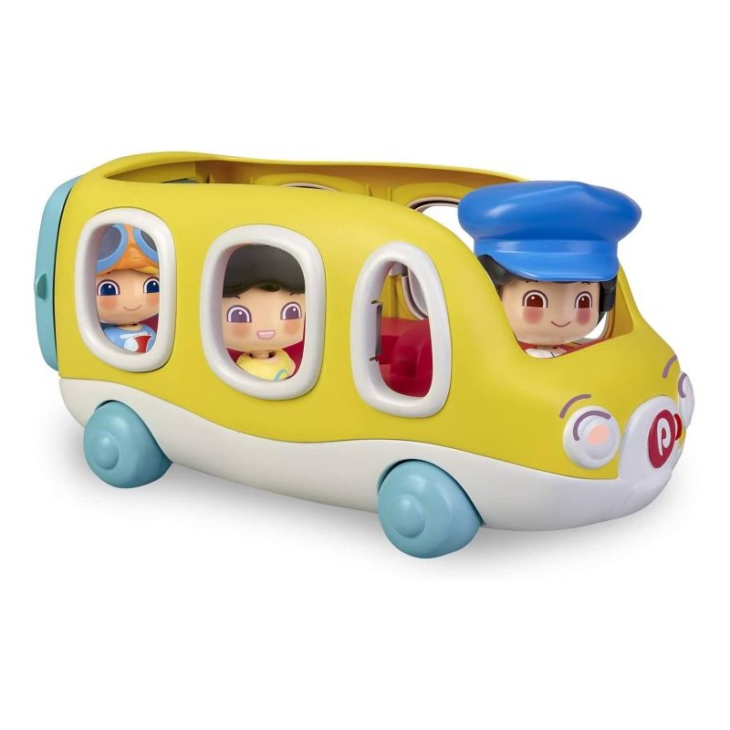 El bus (29 cm) tiene ruedas giratorias y un panel para encajar piezas en la parte de atrás.