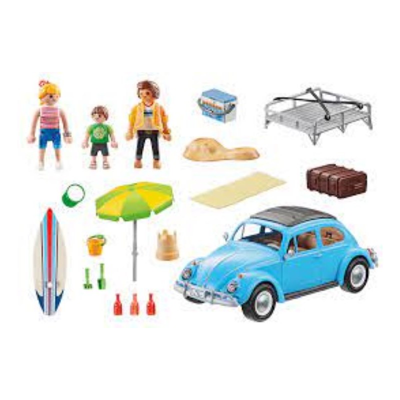 Excursión familiar con el coche de culto de 1960: PLAYMOBIL Volkswagen Beetle con 3 figuras y amplios accesorios para recrear y coleccionar - Espacio para 4 figuras, tapa de techo plegable desmontable, capó trasero abierto, correas para fijar la maleta, una tabla de surf en el techo y mucho más. - Juego de figuras para niños a partir de 5 años: Óptimo para el tamaño de los niños y gradables al tacto con bordes redondeados - Para jugar a diario: Incluye instrucciones para montarlo con ayuda de los padres, Alta calidad y diseño robusto, Limpieza de las piezas (sin pegatinas) con agua corriente y sin químicos - Contenido: 1x PLAYMOBIL Volkswagen Beetle, juego de 52 piezas con instrucciones: 1 VW Beetle, 3 figuras, 48 accesorios, Material: Plástico, LxDxH vehículo con portaequipajes: 10.5x23.5x10.5 cm, Escala (coche modelo): aprox. 1:17, peso: 345 g, 70177