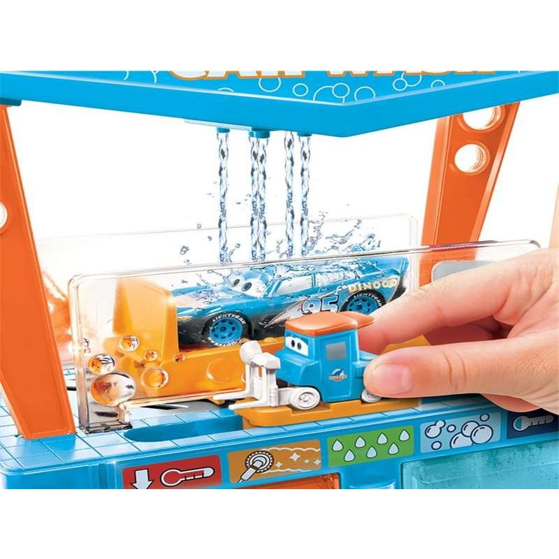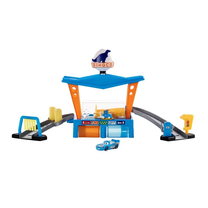 Este conjunto de juego interactivo Estación de lavado de Disney-Pixar Cars cambia de color para un montón de diversión. Rayo McQueen ha estado corriendo por la pista y por carreteras llenas de barro, así que necesita un buen lavado. Primero, llena el tanque de combustible de Rayo McQueen para que pueda pasar por la estación de lavado. Aprieta la señal de Dinoco y observa cómo la cascada de agua cambia el color del coche por arte de magia. Saca a Rayo McQueen de la plataforma, bájalo por la rampa y haz que pase por los cepillos de secado para ver su carrocería recién pintada. Para repetir, mete a Rayo en la piscina de agua fría para devolverle a su color original. Muchas de las características de la estación de lavado son auténticas y hacen que este megadivertido conjunto de juego sea ideal para los niños a los que les encanta el agua, los juegos interactivos y el mundo de los coches. Incluye a Pitty y el exclusivo Rayo McQueen que cambia de color. Los colores y la decoración pueden ser distintos de los mostrados.