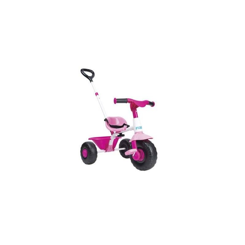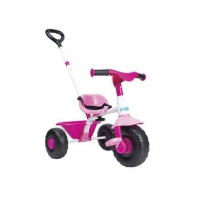 Baby Trike pink es un triciclo muy ligero, que ocupa poco espacio. Cuenta con una estructura metálica que le aporta mayor resistencia frente a golpes, cinturón de seguridad, asa regulable, embrague manual para bloqueo de pedales y volquete. Tu Baby Trike dispone de dos posiciones, para las distintas etapas de tu pequeño: sillita de empuje y triciclo con pedales. La edad recomendada abarca de los 12 meses a los 3 años. Las medidas aproximadas del artículo montado son: 97 (largo) x 48 (ancho) x 96 (altura) cm.