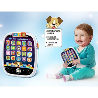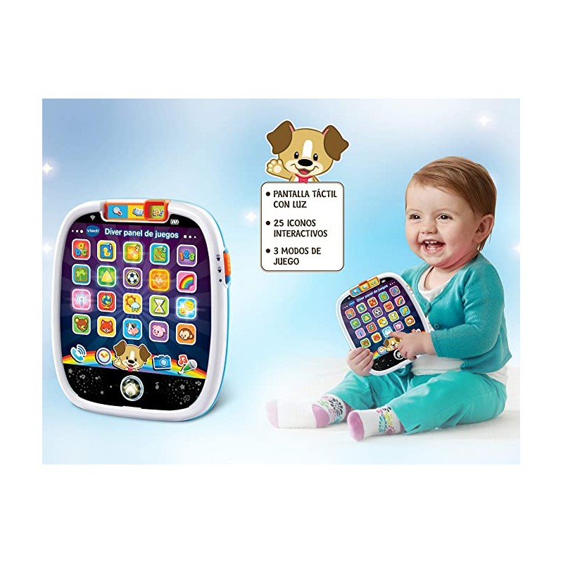 Su panel electrónico cuenta con 25 iconos luminosos para descubrir los números, letras, figuras, animales y muchas sorpresas más, todo ello de la manera más divertida