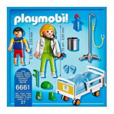 Ahora puedes completar todas las partes de tu hospital con este juego de doctor con niño de Playmobil número 6661 de la serie City Life. Este set incluye camilla, suero, distintos tipos de vendas para cabeza, brazos o piernas que puedes colocar a la figura del paciente, muleta, etc. Y en ella la figura del paciente recibirá todos los cuidados necesarios para que se recupere lo más pronto posible. Con este set tendréis todos los elementos necesarios para formar vuestra propia habitación de hospital para que podáis convertiros en los mejores médicos posibles y cuidar de vuestros pacientes.