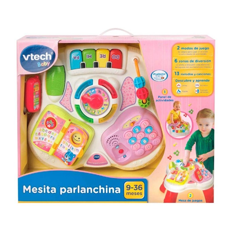 Mesita interactiva de Vtech Baby 2 en 1, con la que los mas pequeños podran aprender un monton de actividades educativas, version en color rosa. Un juguete infantil muy educativo con el que desarollaran el lenguaje, exploracion, descubrimiento, estimulacion sensorial y desarollo psicomotor