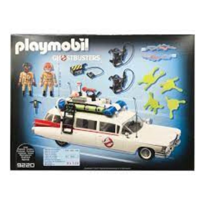 ¡Sal de inmediato a cazar fantasmas con el vehículo de emergencia Ecto-1 de los Cazafantasmas! En el vehículo hay espacio para cuatro cazafantasmas, así como para mochilas de protones, trampas para fantasmas y otro equipamiento. El techo puede quitarse y la puerta del maletero puede abrirse. Atención fantasmas, ¡los Cazafantasmas ya van de camino! La sirena y la luz azul del techo pueden encenderse mediante botones independientes. El set incluye dos mochilas de protones extraíbles con sus disparadores, un medidor PKE para medir la energía psicocinética y babas de silicona que se adhieren a superficies lisas. Contenido: 1 PLAYMOBIL Ghostbusters Ecto-1, Juego de 79 piezas con instrucciones: 1 Ghostbusters Ecto-1, 2 figuras, 76 accesorios (requiere 3 micro baterías 1,5 V, no incluidas), Material: plástico, 33x12,5x13 cm, Art. Nº 9220.