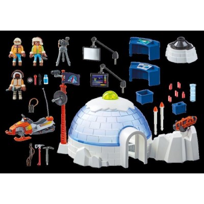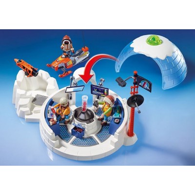 La cúpula de hielo se puede quitar para jugar en el laboratorio. El laboratorio está equipado con mesas y pantallas. En el centro hay una unidad de luz energética (necesita 1x1,5V AAA, no incluidas). Tiene función de apagado automático). Con cañón para disparar, aquí también hay un escondite para los cristales de energía. Incluye 3 figuras equipadas con gorros polares y guantes. Con moto de nieve. Accesorios: picos, escopeta, brújula, linterna, puñal.