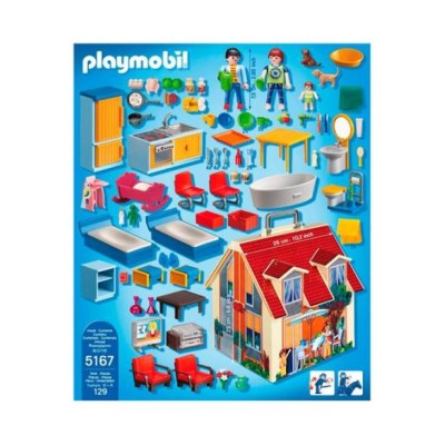 En la nueva Casa de Muñecas Maletín de PLAYMOBIL, todos los habitantes se sienten como en casa. Con una cocina amplia, un salón cómodo, baño y una habitación principal con cuna, ¿qué mas se puede pedir? Todos los accesorios se pueden guardar en su interior. Lleva una práctica asa de transporte para llevarla a todas partes. Dimensiones de la casa abierta: 52 x 12 x 27 cm (LxPxA).