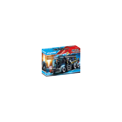 "Atención, atención todas las unidades: Un sospechoso huye en un coche anfibio", suena la radio. Los oficiales de las Fuerzas Especiales encienden inmediatamente su Vehículo con luz y sonido y se ponen en marcha. Con él, coordinan todos los servicios de emergencia en el mar, en tierra y en el aire. Enciende rápidamente la sirena que el viaje va a comenzar. El ladrón huye por terrenos difíciles, pero esto no es un problema para el Vehículo de las Fuerzas Especiales con su doble eje móvil. ¡El ladrón no tiene ninguna posibilidad contra esta fuerza policial concentrada! Genial sonido: El interruptor situado en la parte inferior del módulo de sonido se puede utilizar para cambiar entre dos tonos de sirena. Contenido: 1 PLAYMOBIL City Action Vehículo con luz LED y Módulo de Sonido, Juego de 92 piezas con instrucciones: 1 Vehículo, 3 figuras, 88 accesorios (Requiere 1 micro baterías 1,5 V, no incluidas), Material: plástico, LxPxA: 33,5x15,5x15 cm, Art. Nr. 9360.