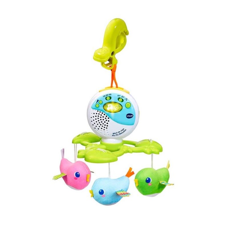 Móvil giratorio pio pio con el que los bebés se relajarán gracias asus tiernas melodías, tiene botones para poder regular el volumen, activar el giro o encender la luz de noche. Puede instalarse en diferentes tipos de sillas y cochecitos, además de la cuna.