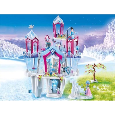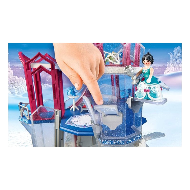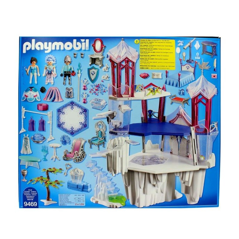 CAJA UN POCO DETERIORADA, EL PRODUCTO ESTA EN PERFECTO ESTADO--- El palacio de cristal es un lugar mágico de hielo y nieve y además es el hogar mágico de la reina de las nieves y su nieta finya; la escalera de cristal transparente lleva a los visitantes a la magnífica sala del trono; aquí la reina recibe a los invitados y celebra lujosas fiestas; en la planta superior se encuentra el amplio dormitorio con tocador y espejo, una acogedora cama con postes de cristal y un armario para su preciosa ropa; la sala de la torre, en la parte superior, es utilizada por la sabia princesa para aprender a escribir notas en su diario y mirar las estrellas con el telescopio; a menudo piensa en su amado príncipe florin y en cómo puede finalmente unirse a él; mágico: el palacio de cristal abarca tres niveles y contiene la reina de las nieves, la princesa finya y un guardia del palacio, así como una cueva del tesoro para almacenar el misterioso cristal del amor
