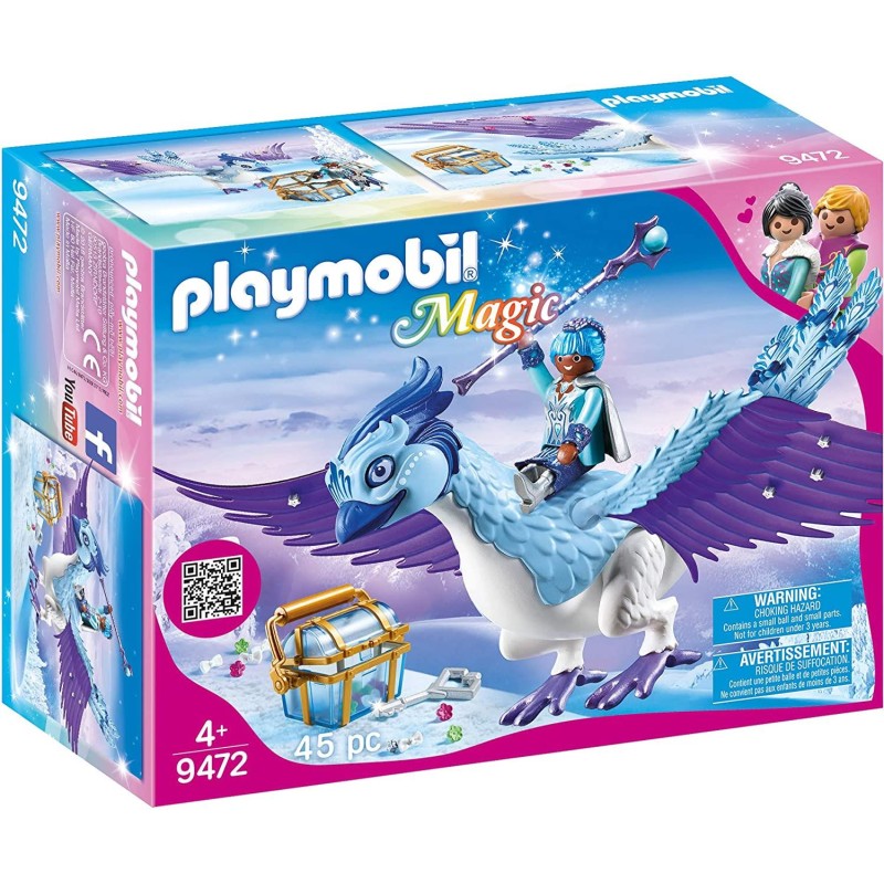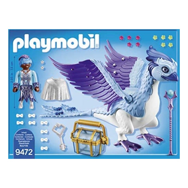 Diversión para niñas y niños: PLAYMOBIL Fénix con la hechicera Sunniva y mágicos accesorios para jugar Encantadoras figuras del mundo invernal, Joyas intercambiables para el plumaje del fénix, llave de repuesto para la cerradura del Palacio de Cristal (9469) y Búsqueda del Diamante de Cristal (9470) Sencillo Juego de figuras para niños a partir de 4 años: Ideal para el tamaño de sus manos y bordes redondeados agradables al tacto Para jugar a diario: Incluye instrucciones para montarlo con ayuda de los padres, Alta calidad y diseño robusto, Limpieza de las piezas (sin pegatinas) con agua corriente y sin químicos Contenido: 1 PLAYMOBIL Magic Fénix, Juego de 45 piezas con instrucciones: 1 fénix, 1 figura, 43 accesorios, Material: plástico, LxPxA: 28x29x11 cm, 9472