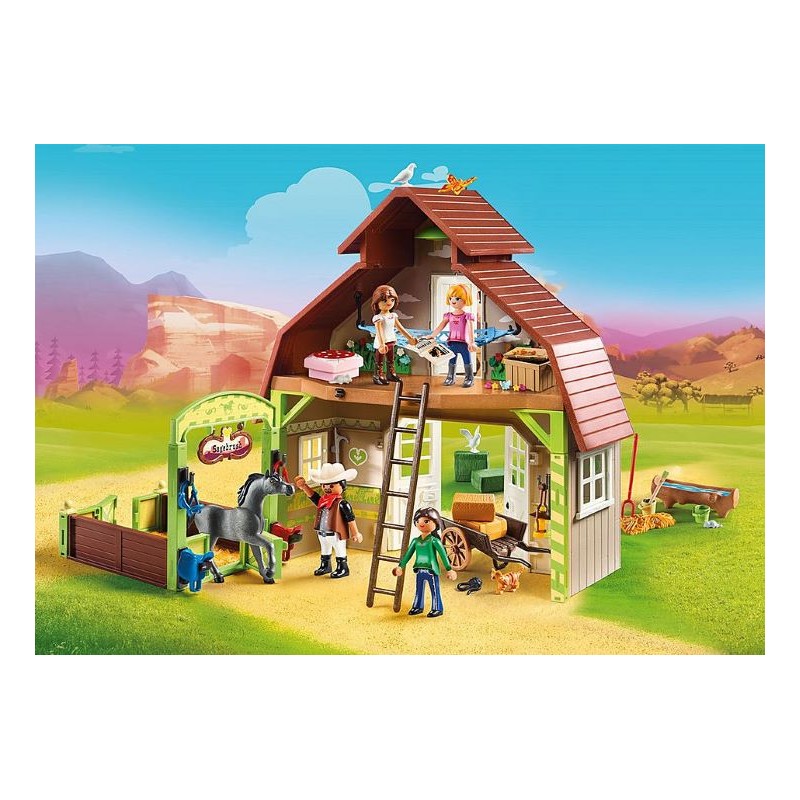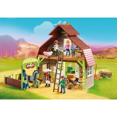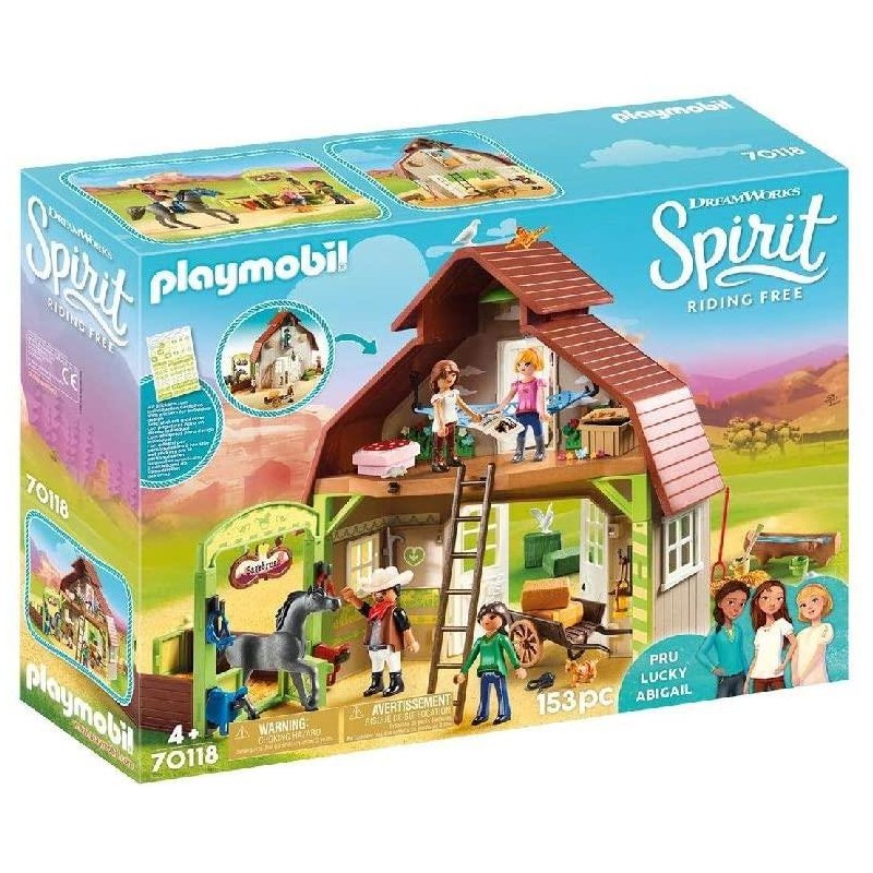 Junto con sus queridos caballos Fortu y sus amigas Pru y Abigaíl experimentan aventuras emocionantes. Las tres chicas acaban de regresar al establo y hacen planes. Abajo, el semental Ajenjo relincha, está impaciente y quiere salir. "Vamos a dar una vuelta", sugiere Fortu y por supuesto no tiene que decírselo a Abi y Pru dos veces. Inmediatamente bajan por la escalera y salen por la puerta del establo. El juego contiene las amigas Fortu, Pru y Abigaíl, el padre de Abigaíl Mr. Granger, un edificio estable con pajar, establo, bolas de heno, silla de montar y muchos extras más. Contenido: 1 PLAYMOBIL DreamWorks Spirit Establo con Fortu, Pru y Abigaíl, Juego de 153 piezas con manual de instrucciones: 1 establo, 4 figuras, 148 accesorios, Material: plástico, LxPxA: 37x29x29 cm, Art. Nr. 70118.