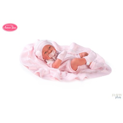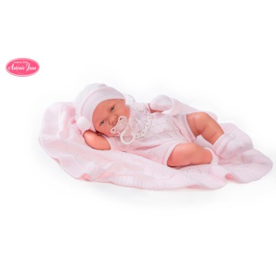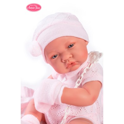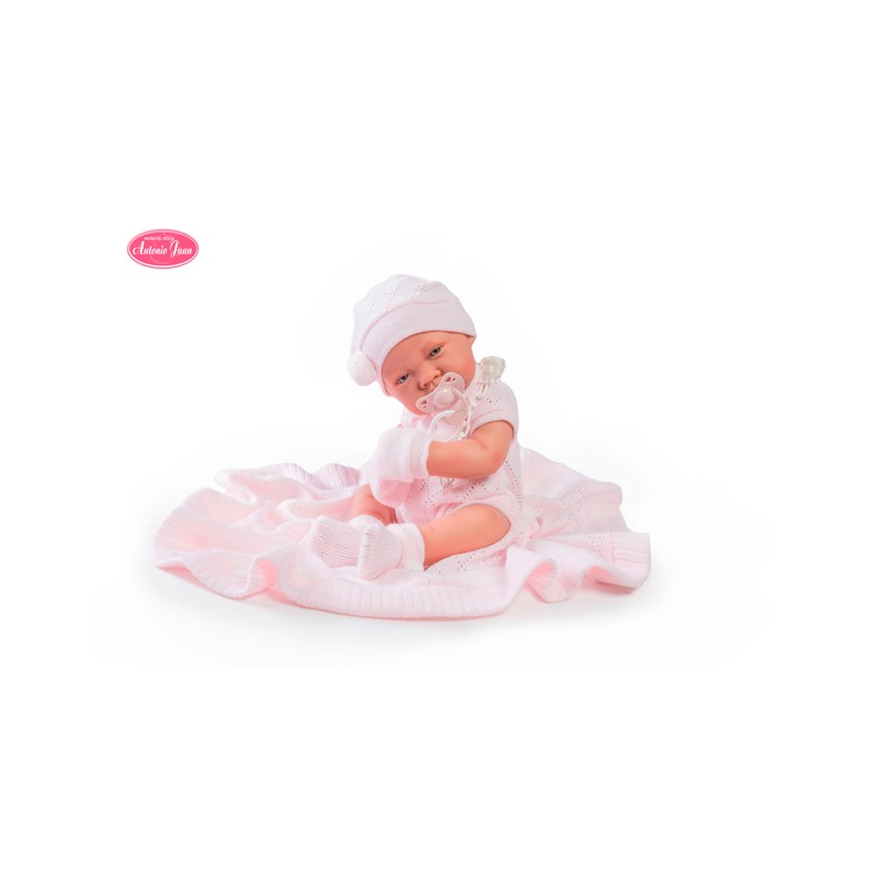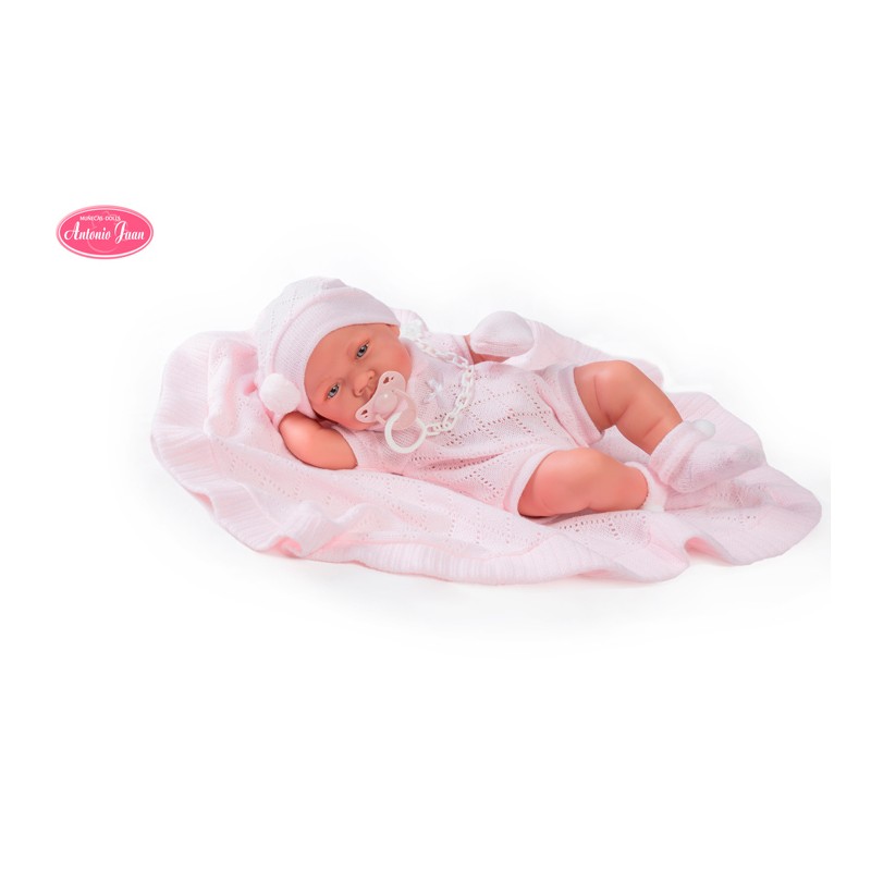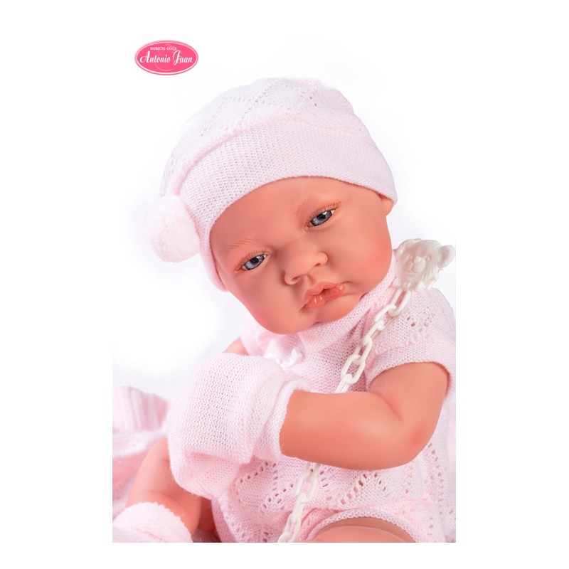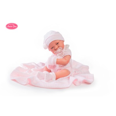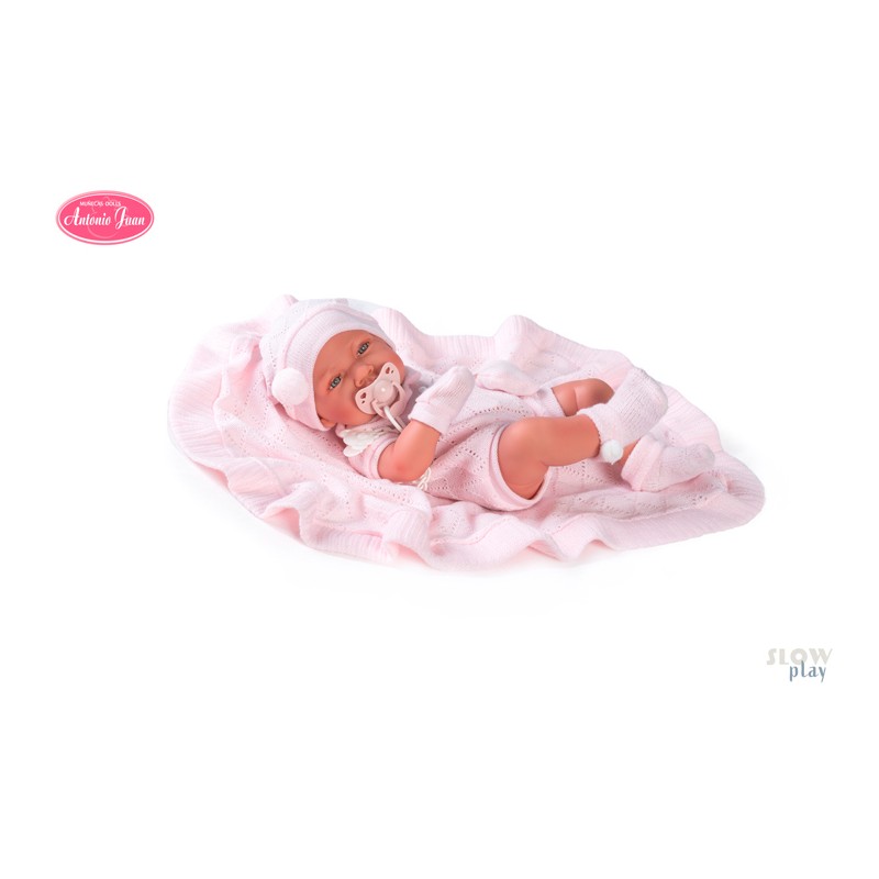 Recien nacida, con ropita de punto en rosa. Está esperando a que la cojas en brazos para arrullarle con su toquilla. Con sus manoplas y calcetines a juego. Su cuerpo es de suave vinilo sexuado. ¡Esta Recién Nacida es una niña!. Mide 42 cm y estará encantada de salir a jugar contigo. ¿Hay algo más adorable que un bebé? Los Recién Nacidos son la esencia de Muñecas Antonio Juan. Un universo de dulzura creados para acompañar a los más pequeños a descubrir el mundo. Compañeros inseparables de largos días de juegos a los que no les falta detalle en sus tiernas facciones y calidad de su ropita y complementos.