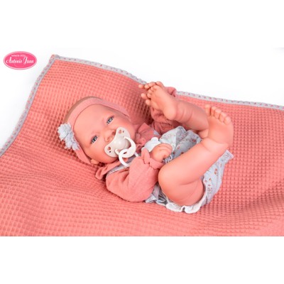 Nuestra Recién Nacida florecitas es muy juguetona y le gusta mucho salir de paseo. Va vestida con un peto y en su diadema tiene una bonita flor. Su cuerpo es de suave vinilo sexuado. Su ropa está confeccionada con tejidos "Organic Cotton", lo que significa que en su cultivo y en su proceso de producción no se han utilizado productos químicos, solo naturales. Mide 42 cm y estará encantada de que la cuides y la lleves allá donde vayas. ¿Hay algo más adorable que un bebé? Los Recién Nacidos son la esencia de Muñecas Antonio Juan. Un universo de dulzura creados para acompañar a los más pequeños a descubrir el mundo. Compañeros inseparables de largos días de juegos a los que no les falta detalle en sus tiernas facciones y calidad de su ropita y complementos.