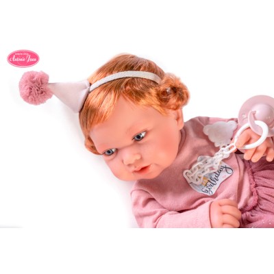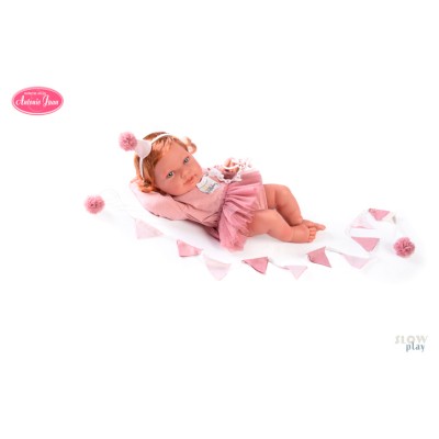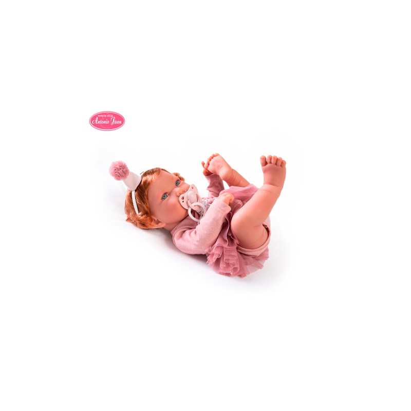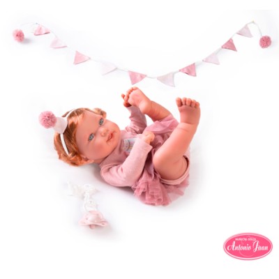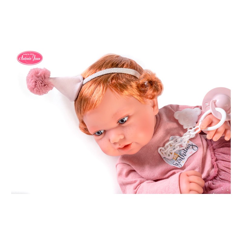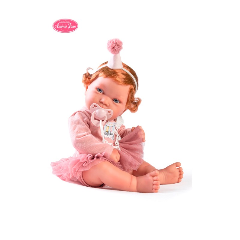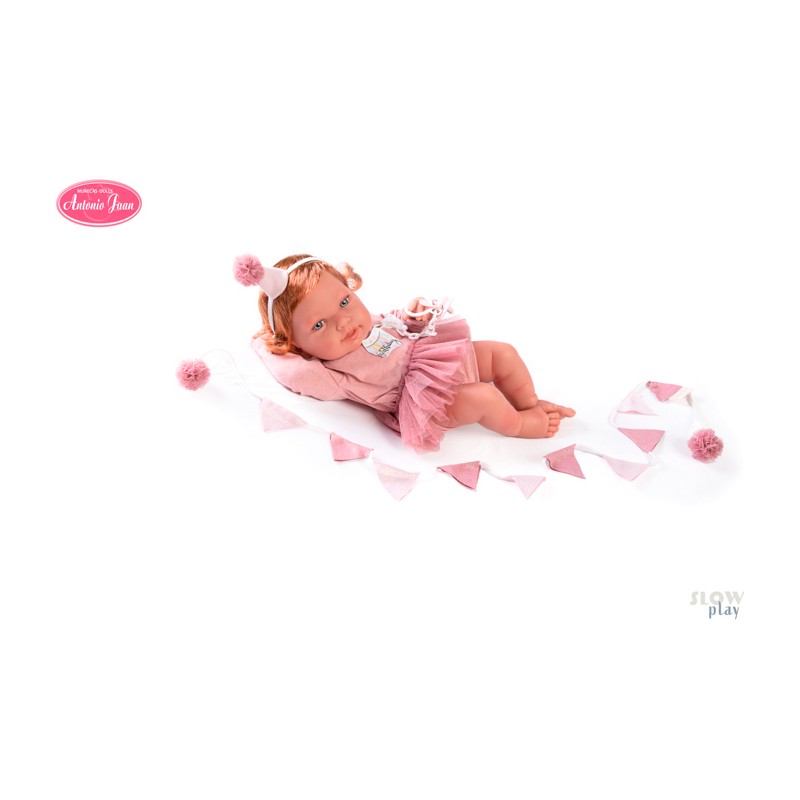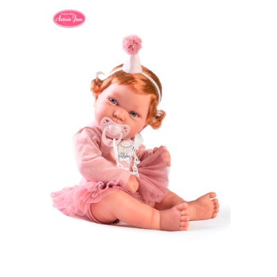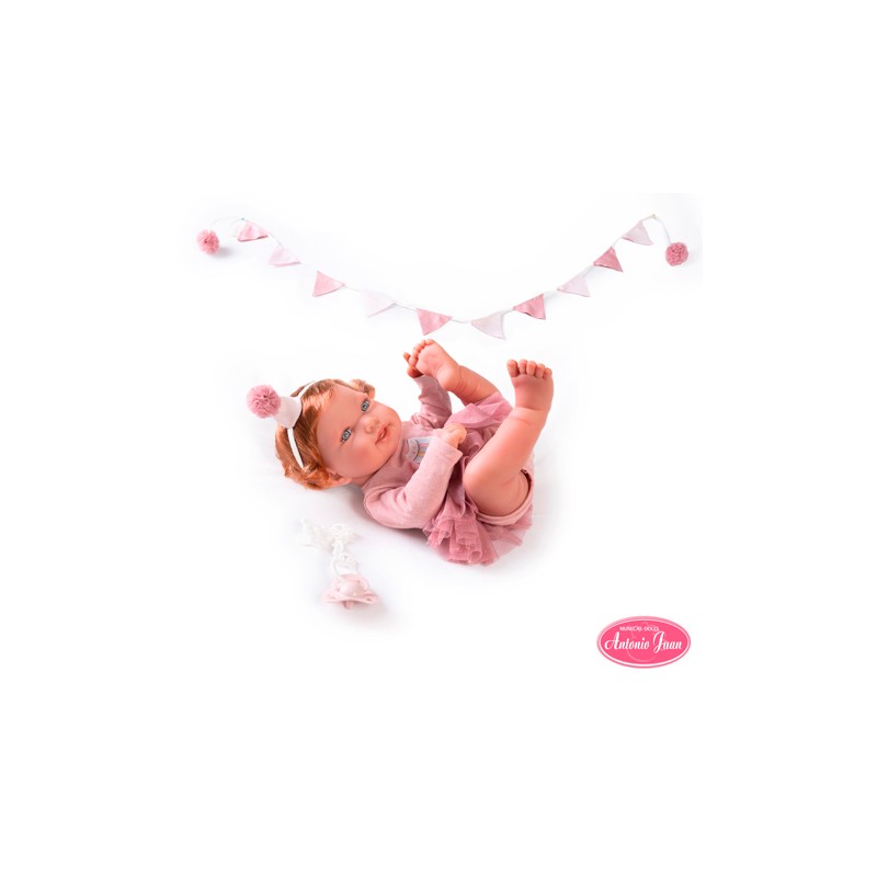 ¡Felicidades Pipa! Hoy estamos de fiesta porque es el cumpleaños de Pipa. Para celebrarlo Pipa se ha puesto guapísima con su faldita de tul rosa y su gorrito de cumpleaños. Además Pipa llevva unos banderines para que puedas decorar su fiesta de cumpleaños y tu habitación. Su cuerpo es de suave vinilo sexuado. Mide 42 cm y estará encantada de que soples las velas con ella. ¿Hay algo más adorable que un bebé? Los Recién Nacidos son la esencia de Muñecas Antonio Juan. Un universo de dulzura creados para acompañar a los más pequeños a descubrir el mundo. Compañeros inseparables de largos días de juegos a los que no les falta detalle en sus tiernas facciones y calidad de su ropita y complementos.