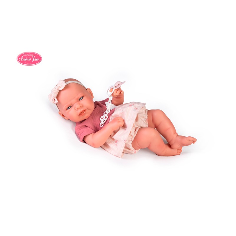 Lea se ha puesto bien guapa con su vestido y su diadema con lacito para salir de paseo. Le encanta que la pongas en el saco-mochila, con capucha y así poder disfrutar allá donde vayas. Su ropa está confeccionada con tejidos "Organic Cotton", lo que significa que en su cultivo y en su proceso de producción no se han utilizado productos químicos, solo naturales. Su cuerpo es de suave vinilo sexuado. Mide 42 cm y se podrá muy contenta cuando la abraces. ¿Hay algo más adorable que un bebé? Los Recién Nacidos son la esencia de Muñecas Antonio Juan. Un universo de dulzura creados para acompañar a los más pequeños a descubrir el mundo. Compañeros inseparables de largos días de juegos a los que no les falta detalle en sus tiernas facciones y calidad de su ropita y complementos.