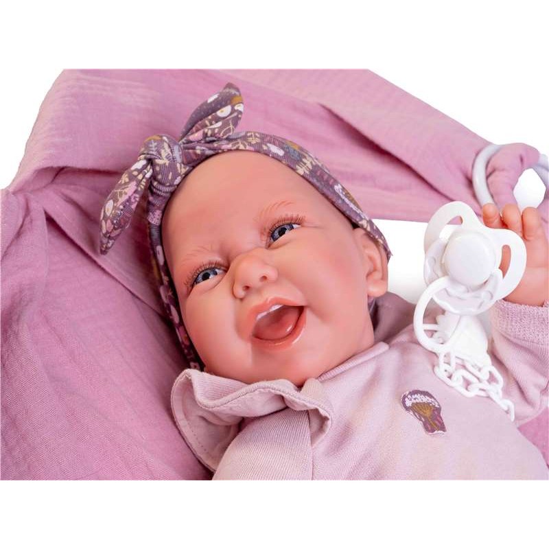 ¡Qué cómoda va Carla en su portabebé! Llévatela contigo a dar bonitos paseos mientras descansa a tu lado, Está muy guapa con su camiseta y su culotte a juego con su diadema. ¡Carla tiene una sonrisa que te enamorará! Su cuerpo es de tela blandito para poder abrazarla suavemente y su cara y extremidades de suave vinilo. Mide 42 cm y pesa 865 gr. ¡Disfrutará mucho contigo allá donde le lleves! Puede colocarse en muchas posiciones como un bebé real porque sus extremidades giran, tiene movimiento, lo que le hace tener más realismo. ¿Hay algo más adorable que un bebé? Los Recién Nacidos son la esencia de Muñecas Antonio Juan. Un universo de dulzura creados para acompañar a los más pequeños a descubrir el mundo. Compañeros inseparables de largos días de juegos a los que no les falta detalle en sus tiernas facciones y calidad de su ropita y complementos.