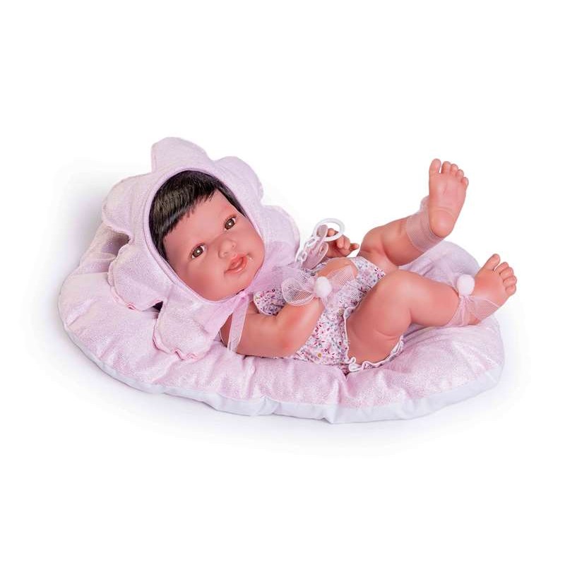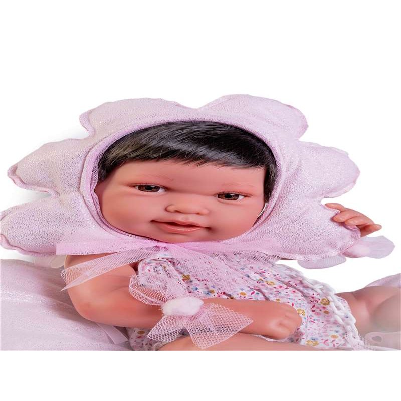 Pipa es una recién nacida muy divertida, que hoy ha querido disfrazarse de flor. Su tela es brillante, asi que ¡Pipa resplandece! Lleva un pelele de florecitas y le gusta tumbarse en su cojín a jugar. Lleva unos complementos con pompón en sus manos y pies. Su cuerpo es de suave vinilo sexuado. Mide 42 cm y le encantará que la abraces para dormir. ¿Hay algo más adorable que un bebé? Los Recién Nacidos son la esencia de Muñecas Antonio Juan. Un universo de dulzura creados para acompañar a los más pequeños a descubrir el mundo. Compañeros inseparables de largos días de juegos a los que no les falta detalle en sus tiernas facciones y calidad de su ropita y complementos.