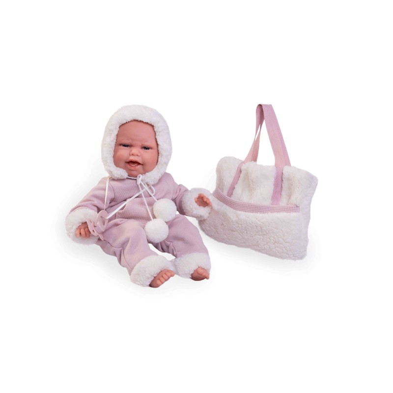 Bebé con una estructura interna flexible y el cuerpo blandito. Con un tamaño manejable para el juego de los pequeños, es capaz de adaptarse y seguir a los más pequeños en todas sus aventuras. Como un bebé de verdad, adopta cualquier postura para que no haya limites en su imaginación a la hora de jugar con su muñeca. ¡Pero que guapa está Clara con su buzo con borreguillo!. Tiene una cara muy simpática y le encanta que la abracen. ¿Has visto que bolso más bonito para ti? Va a conjunto con su traje, para que puedas guardar todo lo que necesites y salir con ella a pasear. Disfruta jugando con ella con todas sus posturas. Mide 34 cm y pesa 530 gr. Clara es una dulce bebé de Muñecas Antonio Juan.