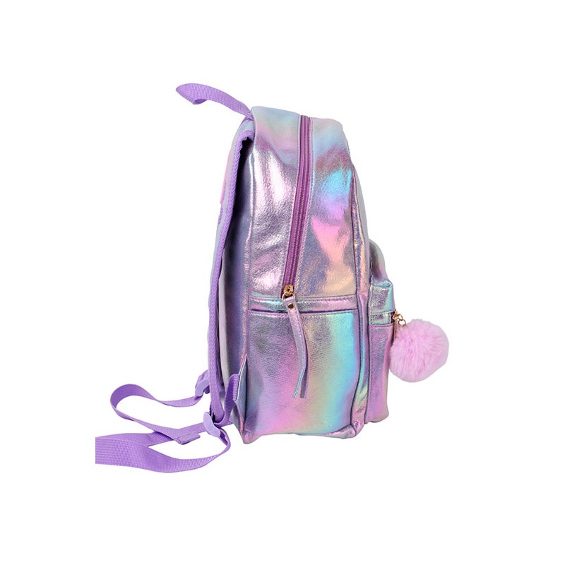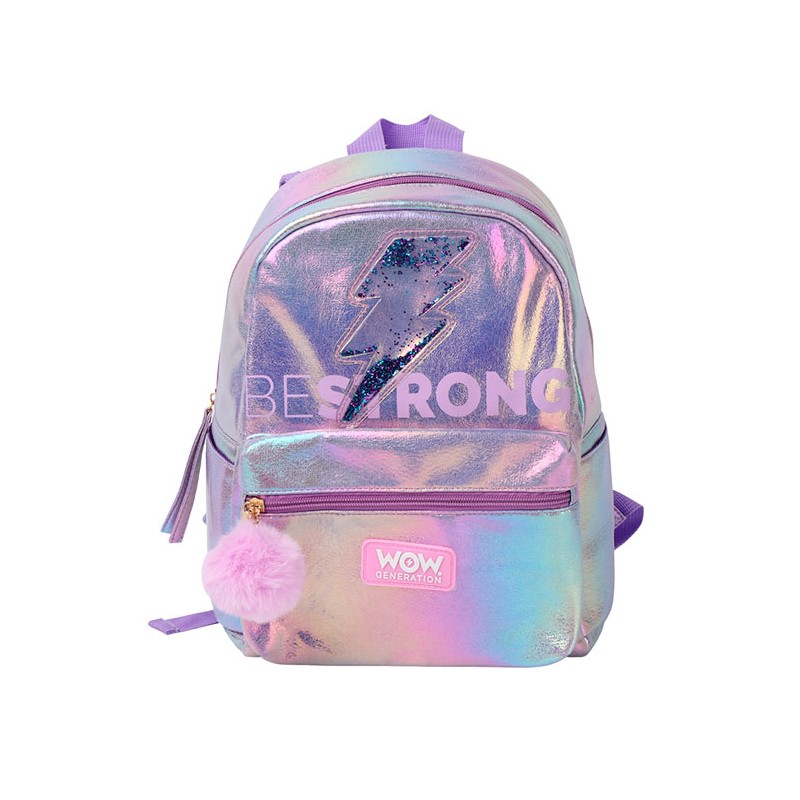 Esta mochila de paseo es ideal para cualquier salida de tu pequeña. Con un diseño efecto metalizado de color arcoiris es ideal para que tu hija vaya a la auténtica moda como una buena chica WOW. Tanto para salir de excursión como una tarde con amigas, esta mochila es perfecta para llevar todas sus pertinencias a todas partes. Además lleva un ponpón decorativo que tu hija va a adorar. La mochila tiene un compartimento grande y un bolsillo delantero más pequeño, los dos con cierre de cremallera y mide 32 cm