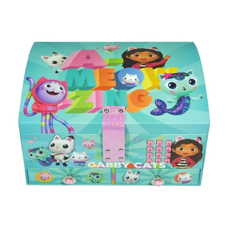 El joyero musical de Gabby´s Dollhouse es el complemento ideal para guardar tus joyas y accesorios en tu habitación. Dale el toque de glamour que le falta a tu cuarto con este joyero musical de moda. Tiene todos los compartimentos necesarios para que oragnices bien tus joyas: bandeja con compartimentos, compartimento escondido grande y cajones. Además, tiene el toque musical de los joyeros de toda la vida, para no perder la tradición. Y esto no es todo... íse cierra con código secreto! Tus joyas no habían estado nunca a tan buen recaudo.