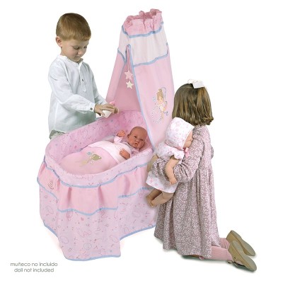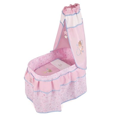 Fabricado con materiales de alta calidad, con tejidos coloridos en tonos rosas y detalles florales, este bonito moisés, está preparado para que puedas jugar con el como si fuera de verdad.