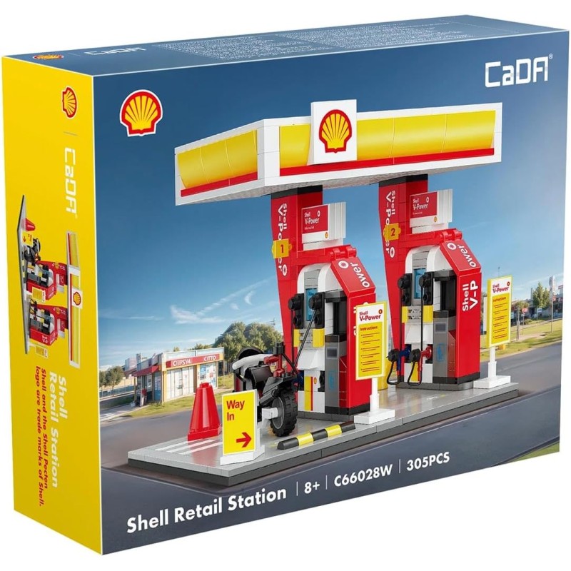 CONSTRUYE esta fiel replica de una gasolinera de autoservicio. Cuenta con 4 expendedores de combustible que a su vez, tienen 2 surtidores de diferentes combustibles. La marquesina tiene el símbolo y los colores de Shell y, viene con todo tipo de detalles. Incluye 1 moto. DETALLES: No le falta de nada a esta gasolinera de autoservicio, como los carteles con las instrucciones para el autoservicio o las pantallas de auto pago. Los surtidores se pueden acoplar al vehículo para simular el repostaje. Incluye una motocicleta. Hay varios set, colecciónalos y amplia tu área de servicio Shell. Garantía DeQuBe. DIMENSIONES: La estación tiene unas medidas de19,5cm de ancho y 11cm de alto. Las dimensiones de la caja son de23 x 18 x 7cm. CONTENIDO: Contiene 305 piezas y guía de montaje. Recomendado para mayores de 8 años.