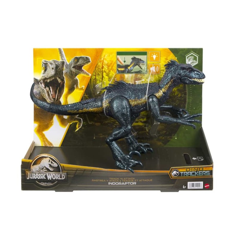 Este Track ´N Attack Indoraptor presenta una decoración de colores de la jungla con acentos iridiscentes para darle a este famoso dinosaurio híbrido de la franquicia Jurassic World una apariencia especialmente aterradora.