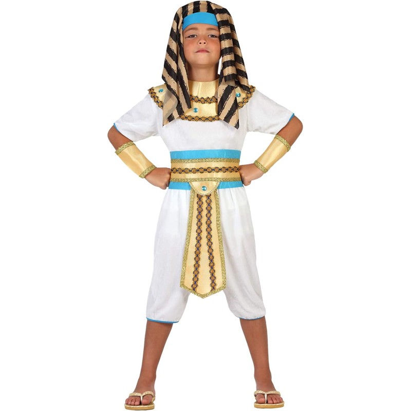 se compone por siete piezas: un accesorio para la cabeza con franjas negras y doradas sujetado por un turbante azul aportando lujo y divinidad, un accesorio para el cuello dorado con ornamentos en su contorno y en el centro con brillantes azules, una camiseta blanca, dos brazaletes dorados con decorados en los costados, un cinturón con la misma estética que el accesorio del cuello y un pantalón blanco en contraste con el resto de elementos.