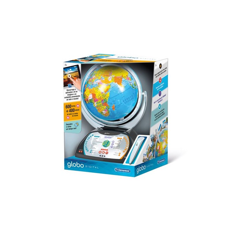 O novo globo interativo roda 360° de forma a revelar todos os recantos escondidos do mundo, onde está repleto de informação e curiosidades que te ajudarão a aprender geografia de uma forma divertida e inovadora!