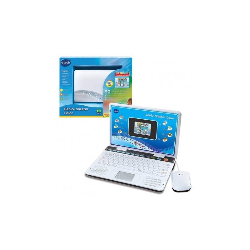 Ordenador Bilingüe con formato portátil y pantalla a color que incluye un total de 180 actividades, 90 en español y otras 90 en inglés, adaptadas al currículo escolar.