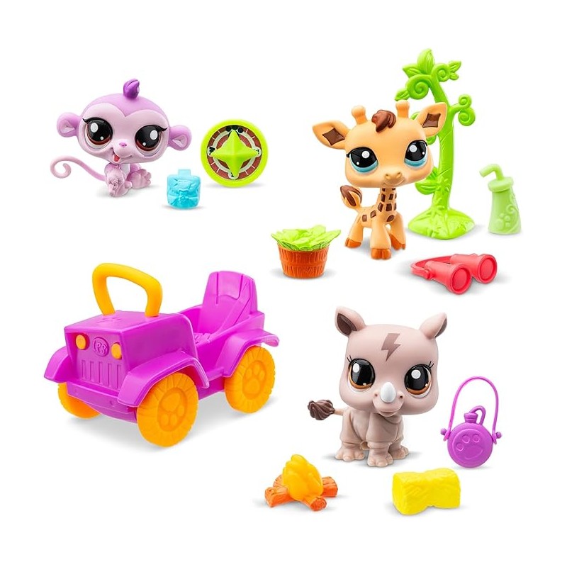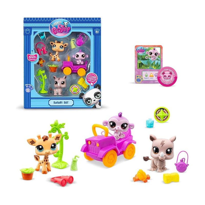 Ha llegado una generación de Littlest Pet Shop; la Serie 1 de la Generación 7 ya está aquí; el Safari Play Pack incluye 3 mascotas con cabezas móviles, 9 accesorios adorables, 1 tarjeta de coleccionista, 1 código virtual y 1 guía de coleccionista