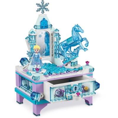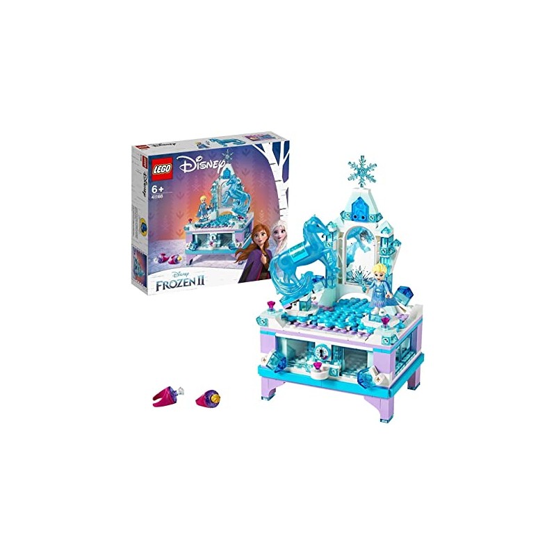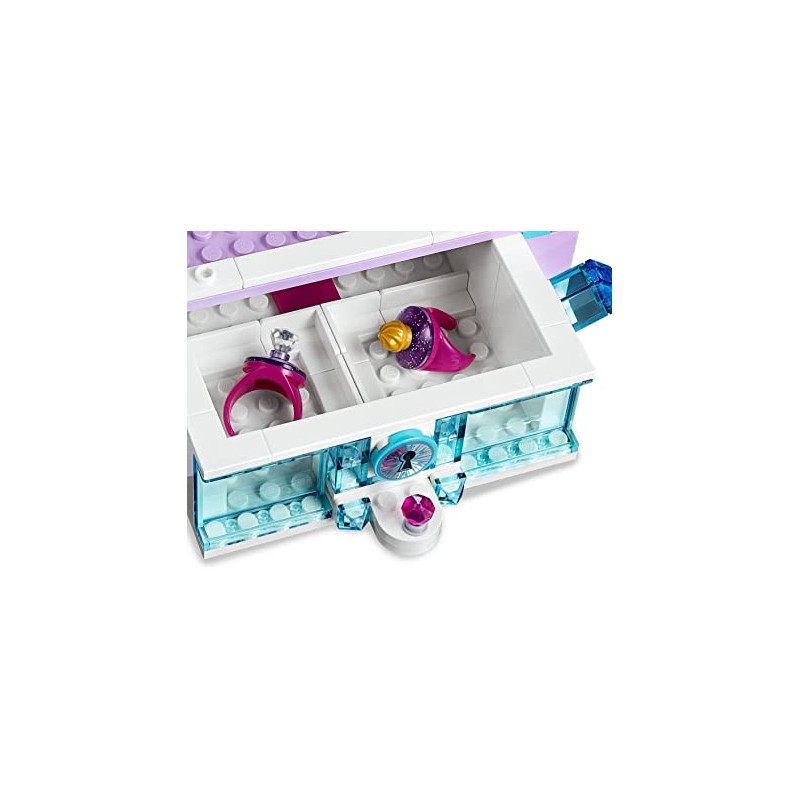 Este joyero inspirado en Elsa, el personaje de Frozen, cuenta con cajón con cierre, espejo, función de giro para Elsa y el Nokk, y 2 anillos LEGO