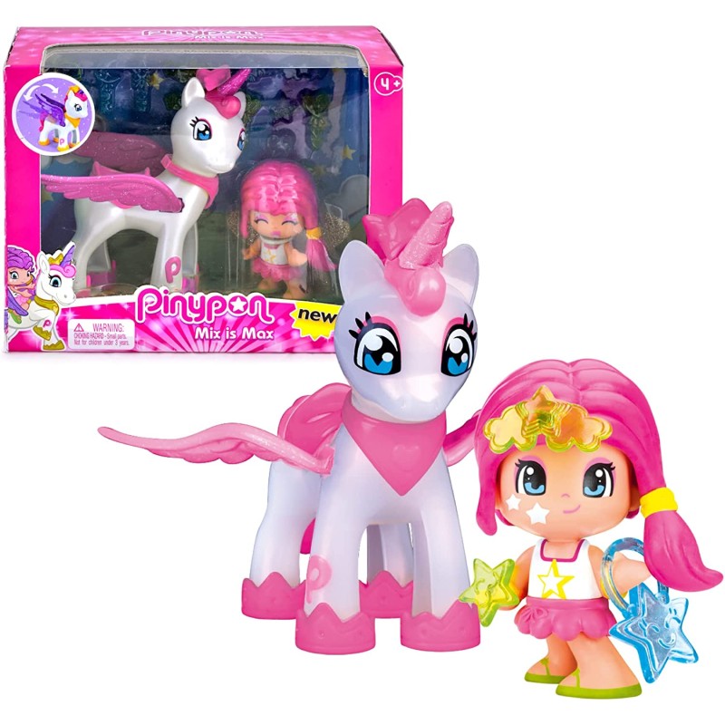 LOS COLORES PUEDEN VARIAR A LOS DE LA IMÁGEN. Uncornio volador y figurita de Pinypon Estrella con decoración secreta