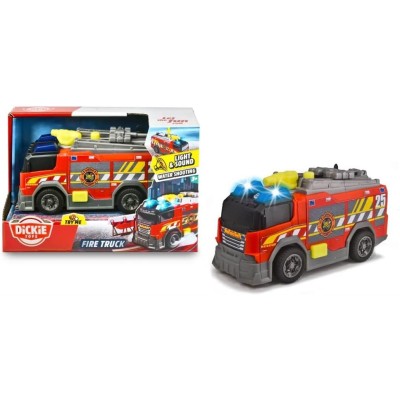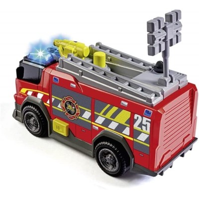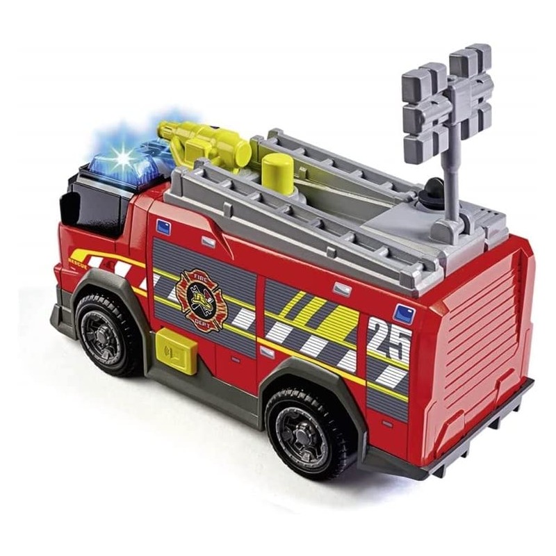 ¡Wee-woo wee-woo! El camión de bomberos cuenta con un botón para activar la sirena y la luz azul incorporadas, que alertan al tráfico cercano para que le ceda el paso. (Incluye 2 pilas AAA.)