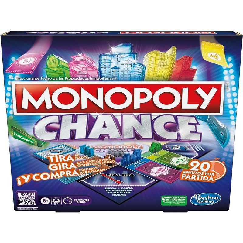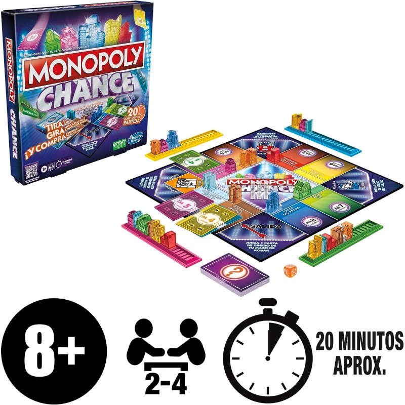 20 MINUTOS POR PARTIDA: ¡Olvida todo lo que sabes del juego de mesa Monopoly! El juego Monopoly Chance es un juego de cartas cuyas partidas se juegan en 20 minutos aproximadamente