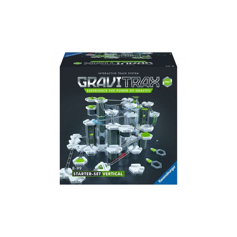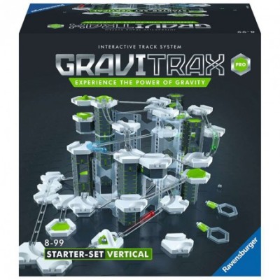 GraviTrax Pro Starter Set Vertical es la versión profesional del innovador sistema de pistas de canicas interactivo, con el que podremos diseñar y construir nuestras propias pistas y experimentar con la fuerza de la gravedad, el magnetismo y la energía cinética que guiarán a las canicas hasta la meta.
