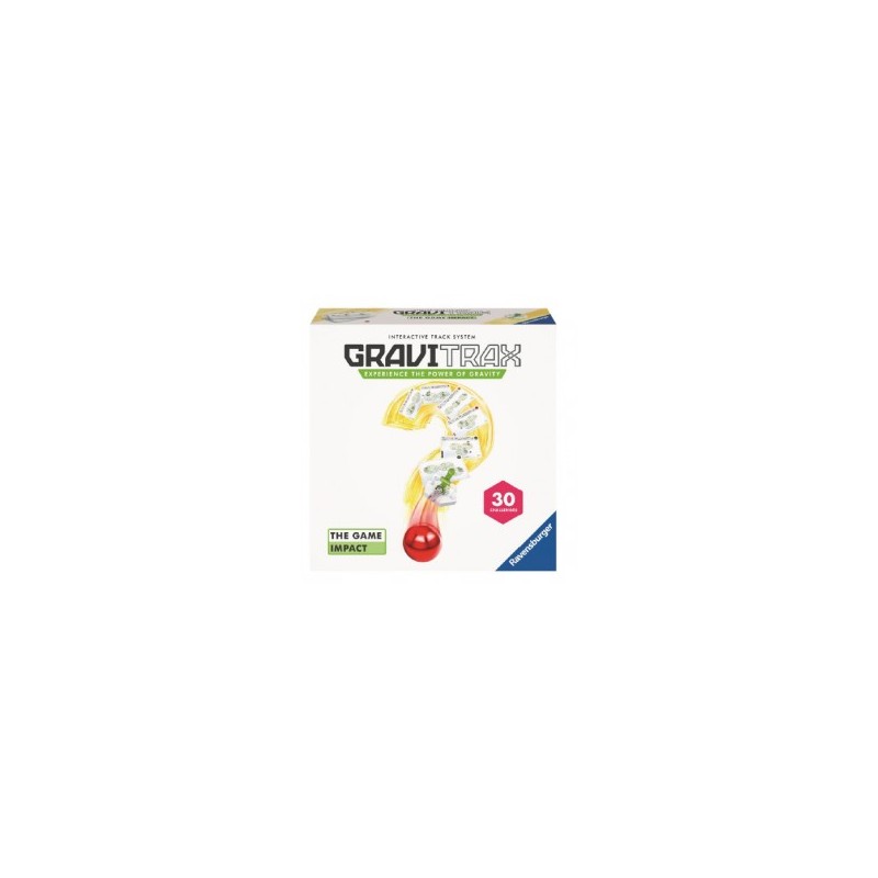 Esta caja de GraviTrax cuenta con 27 componentes, entre ellos el accesorio Hammer, 4 módulos de altura, 7 curvas, 1 cruce, 1 canica, ¡y muchos otros componentes para vivir emocionantes retos!